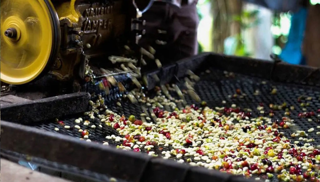 With washed coffees, the cherries are run through a depulping machine where the fleshy part is mechanically removed and only a sticky layer of mucilage remains around the seeds. The coffee seeds (‘beans’) are left to ferment in water tanks where, again thanks to yeasts and bacteria, the mucilage is broken down and fermentation occurs.